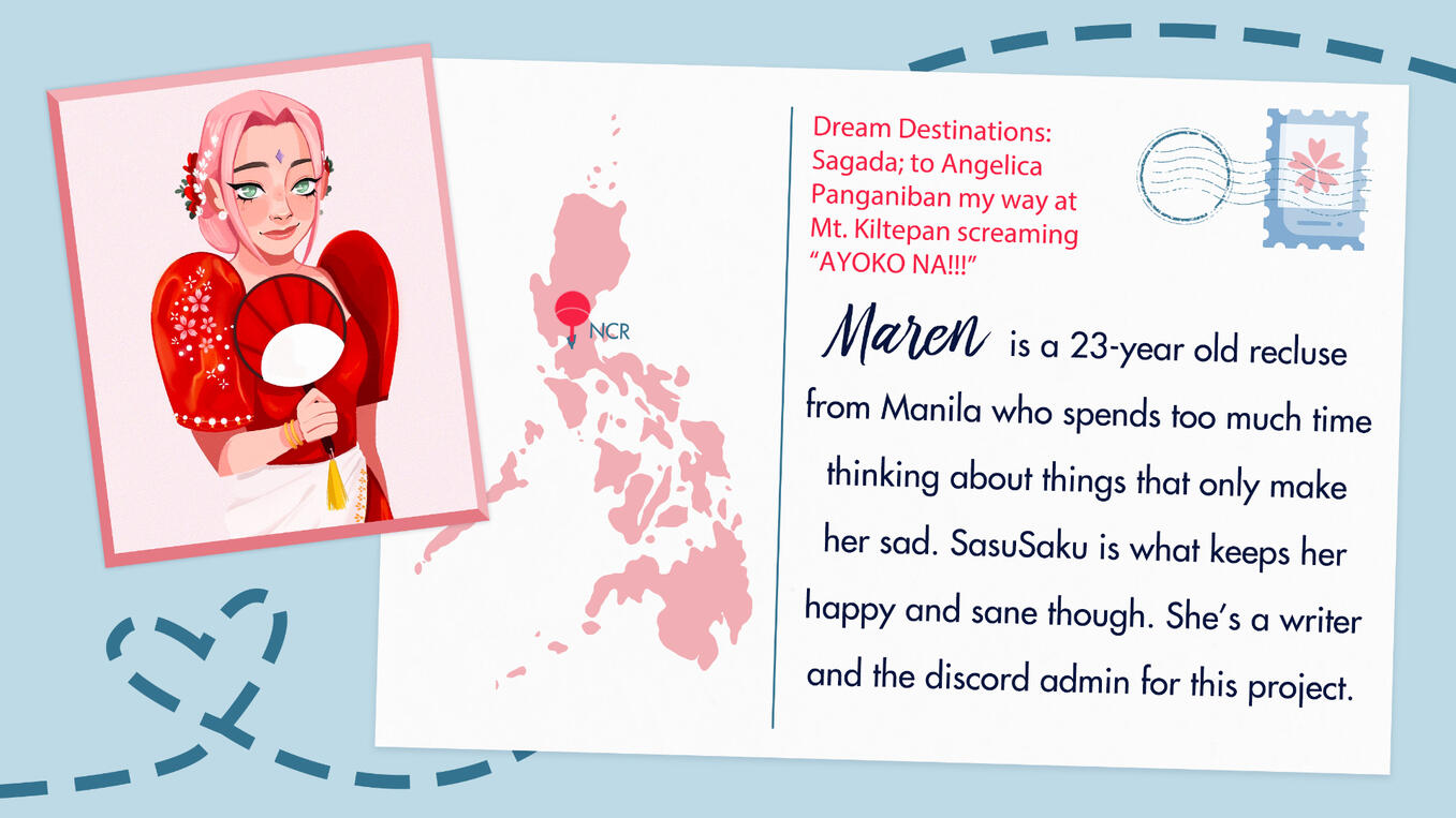 Lakbay: A SasuSaku PH Travel Zine is a free digital, open invite, SFW zine. The content revolves around Sasuke and Sakura’s relationship as they travel around the Philippines.