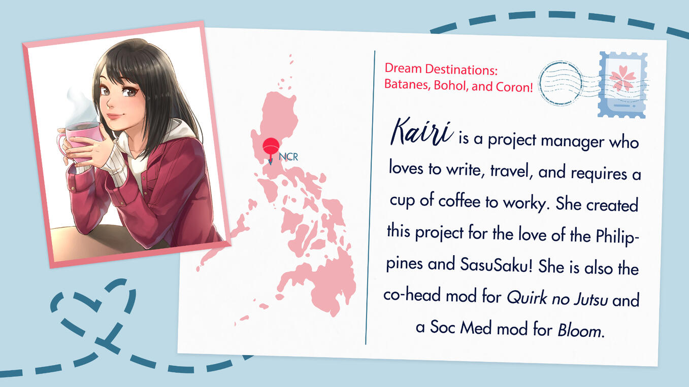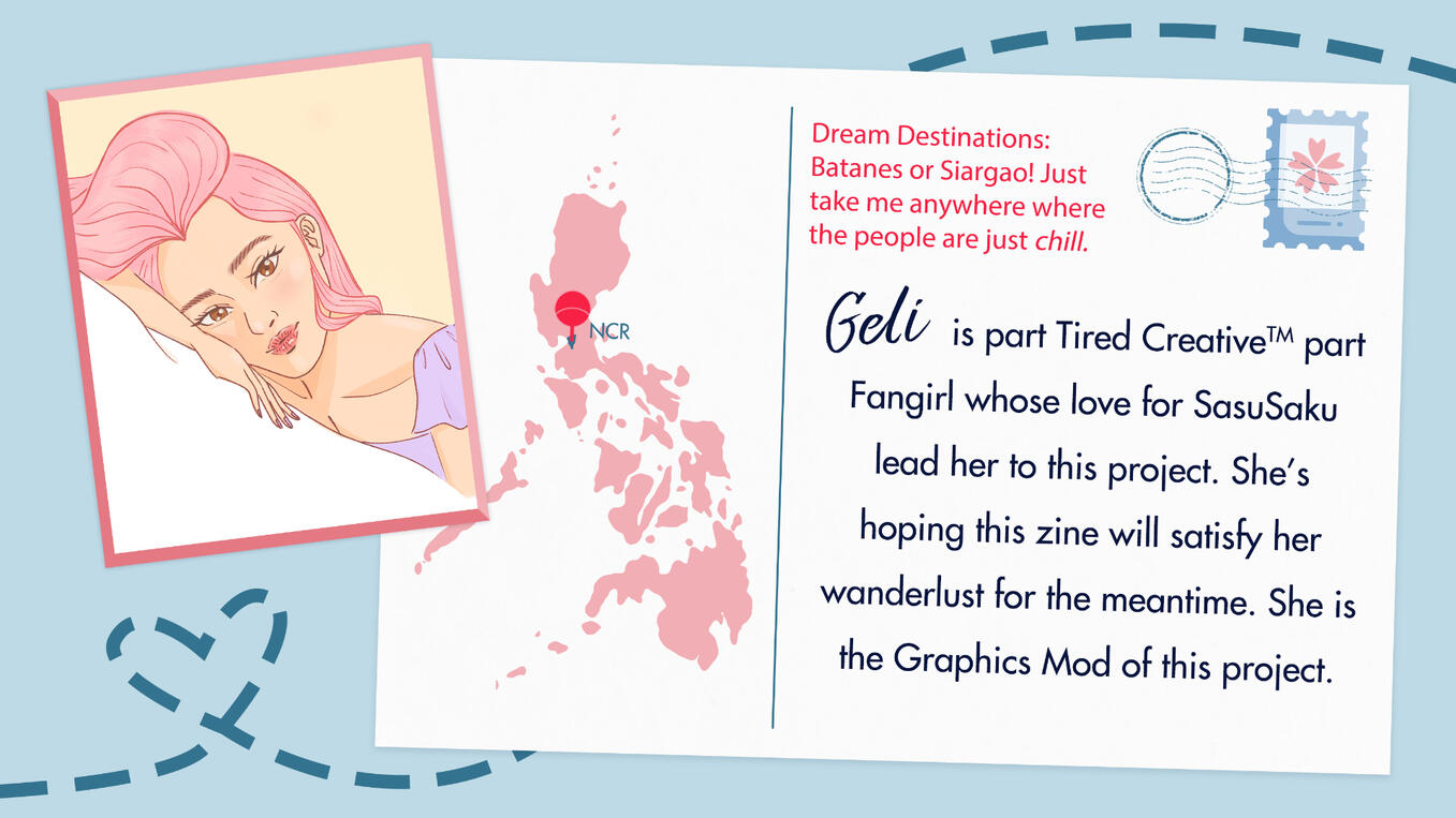 Lakbay: A SasuSaku PH Travel Zine is a free digital, open invite, SFW zine. The content revolves around Sasuke and Sakura’s relationship as they travel around the Philippines.